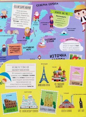 Този необикновен АТЛАС ще ни срещне с най-интересните места, хора и традиции по света. Ще научим за красивите градове на Европа, за непознатите обичаи на хората в Африка и как се забавляват и танцуват в Южна Америка. Индианци, масаи, ескимоси и пирати изпълват страниците на тази богато илюстрирана книга.