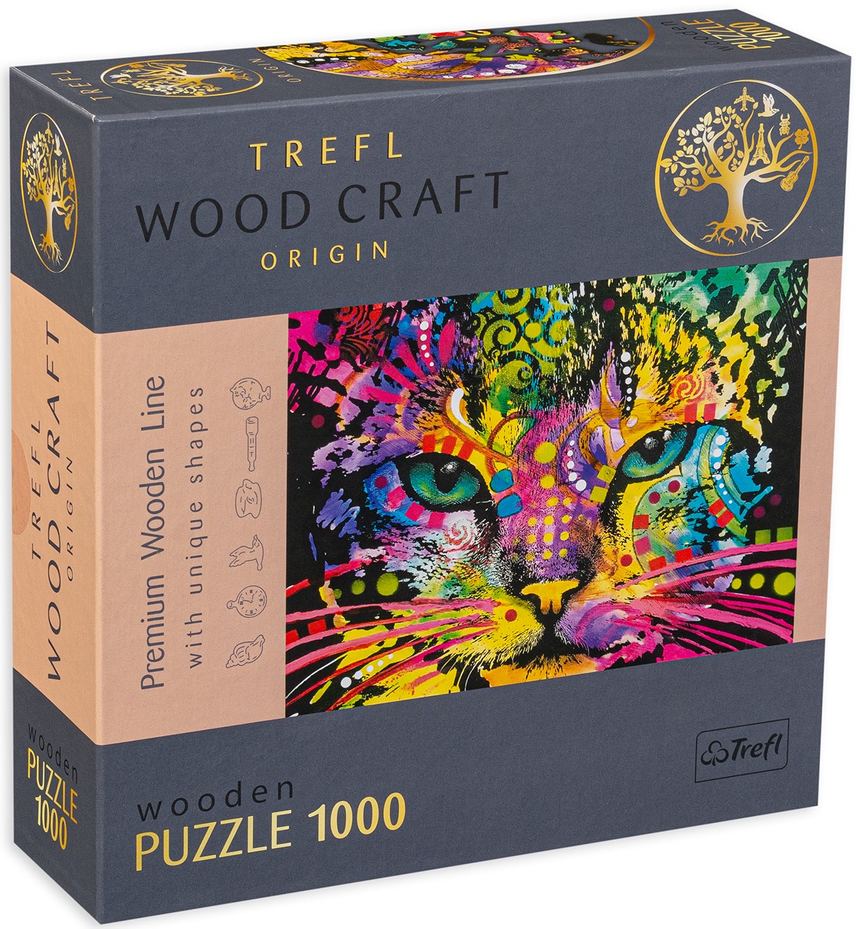 Дървен пъзел Trefl от 1000 части – Разноцветна котка