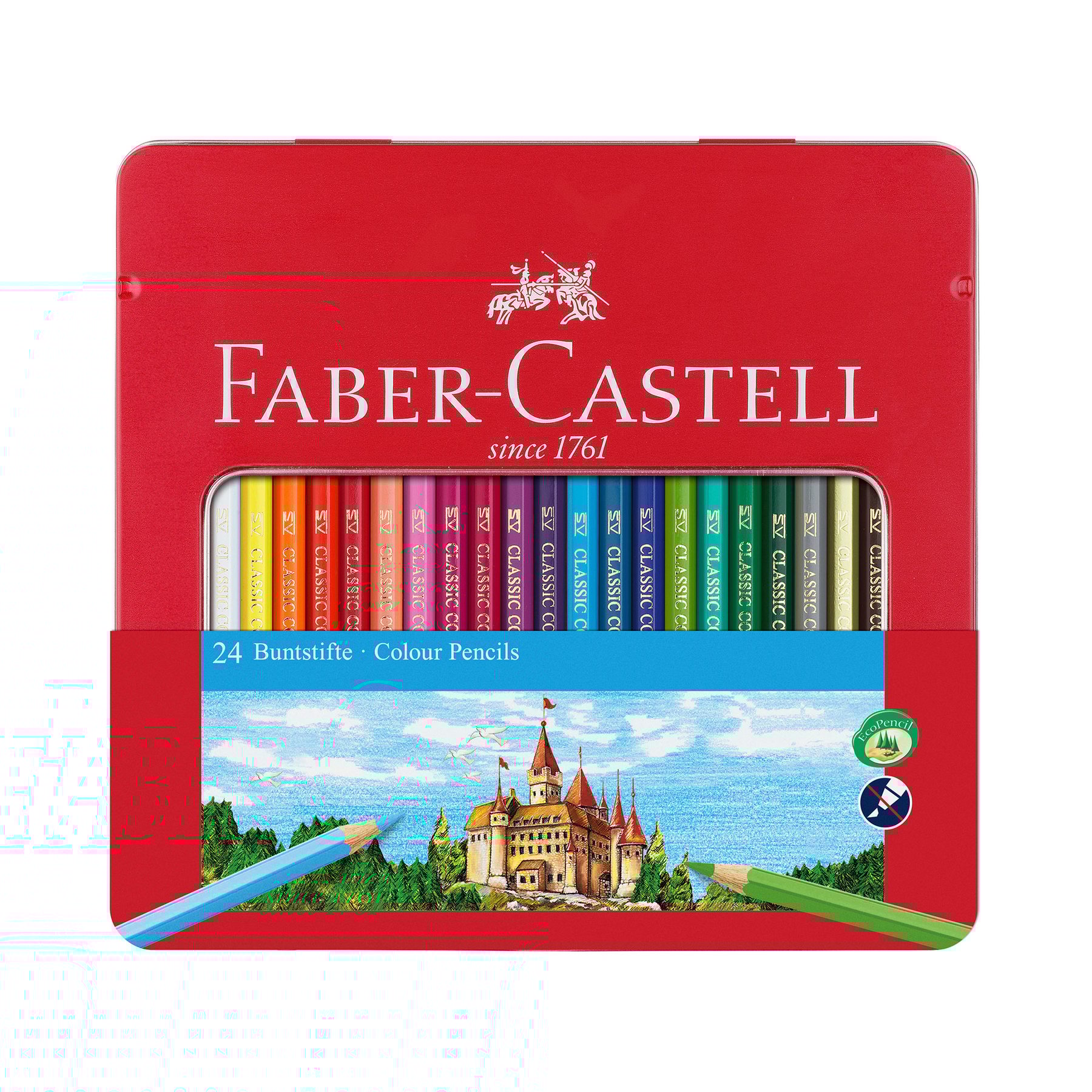 Faber-Castell Цветни моливи Замък, 24 цвята, в метална кутия