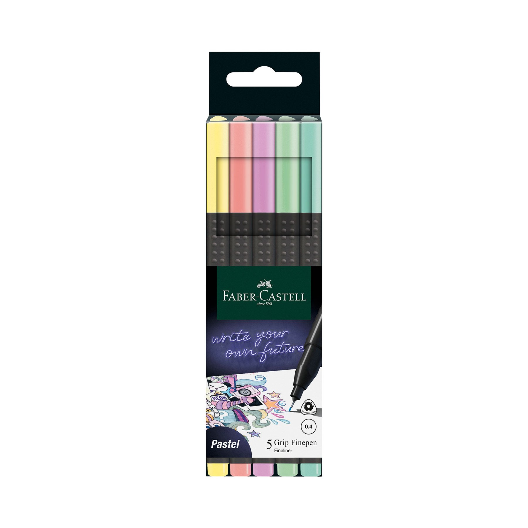Тънкописците Grip 0.4 са идеални за фини линии, надписи и сенки. Имат ергономично триъгълно тяло и Grip зона на захващане против изплъзване при писане. Осигуряват оптимален комфорт при писане и гладко нанасяне на цвета.