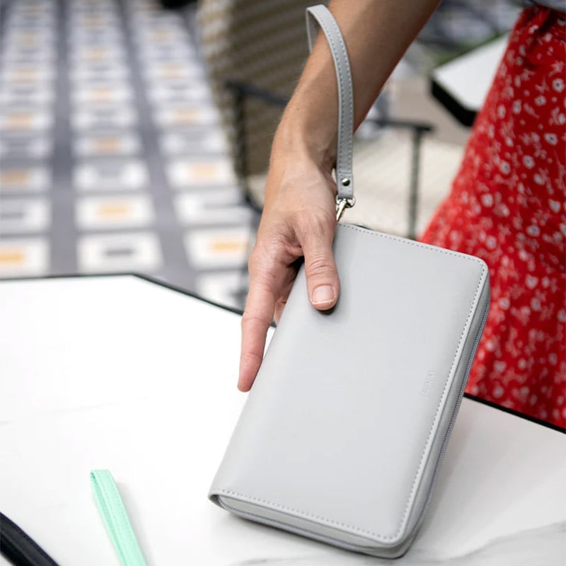 Направете вашия органайзер Saffiano Personal Compact Zip още по-удoбен с лентата за ръка Filofax. Лентата е изработена от синтетична кожа в сив цвят.
