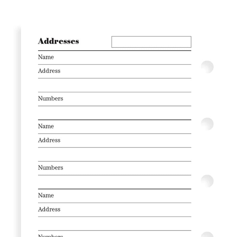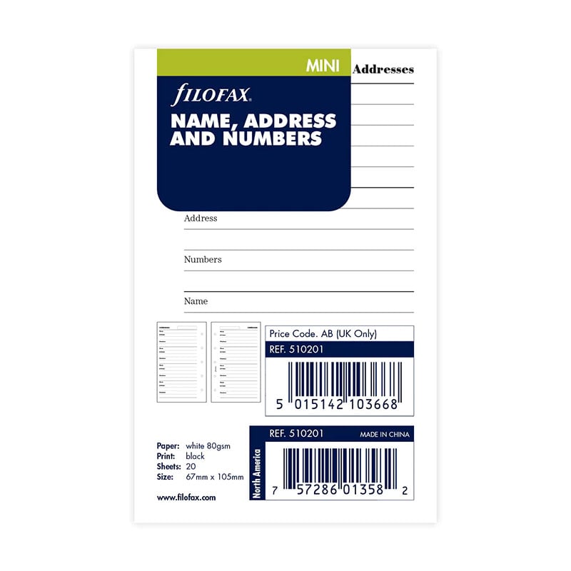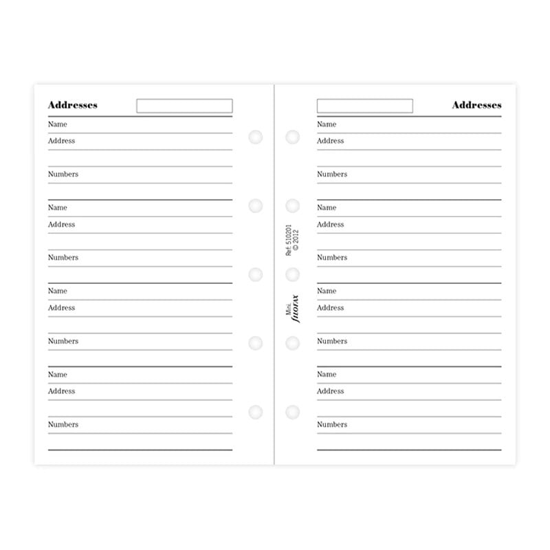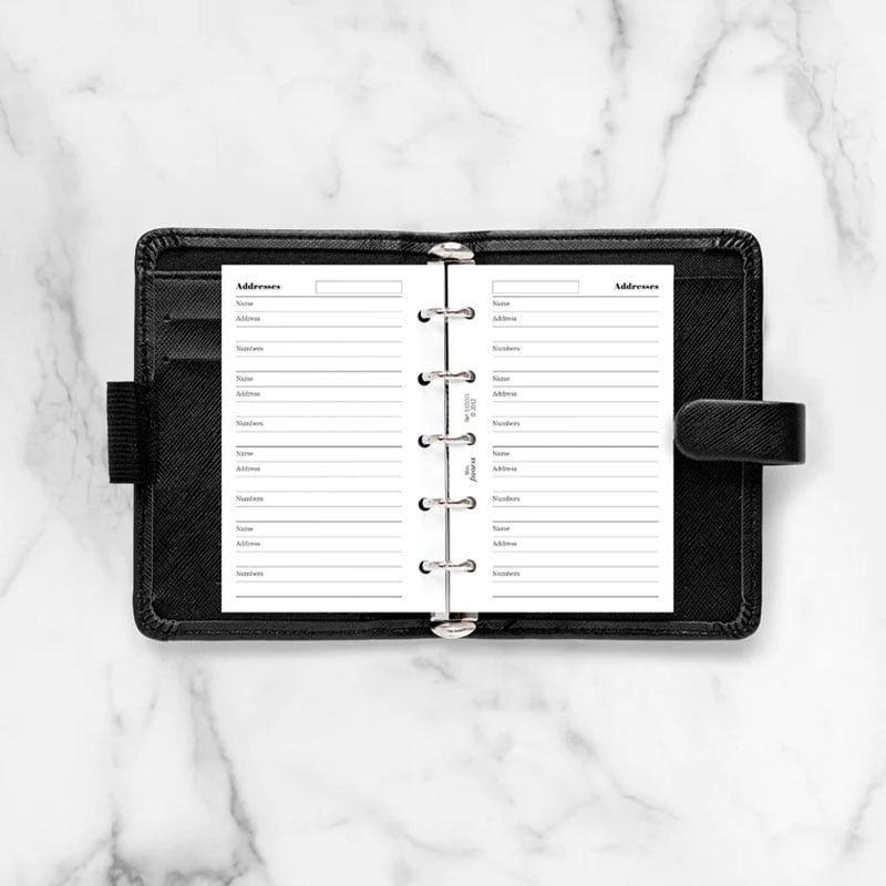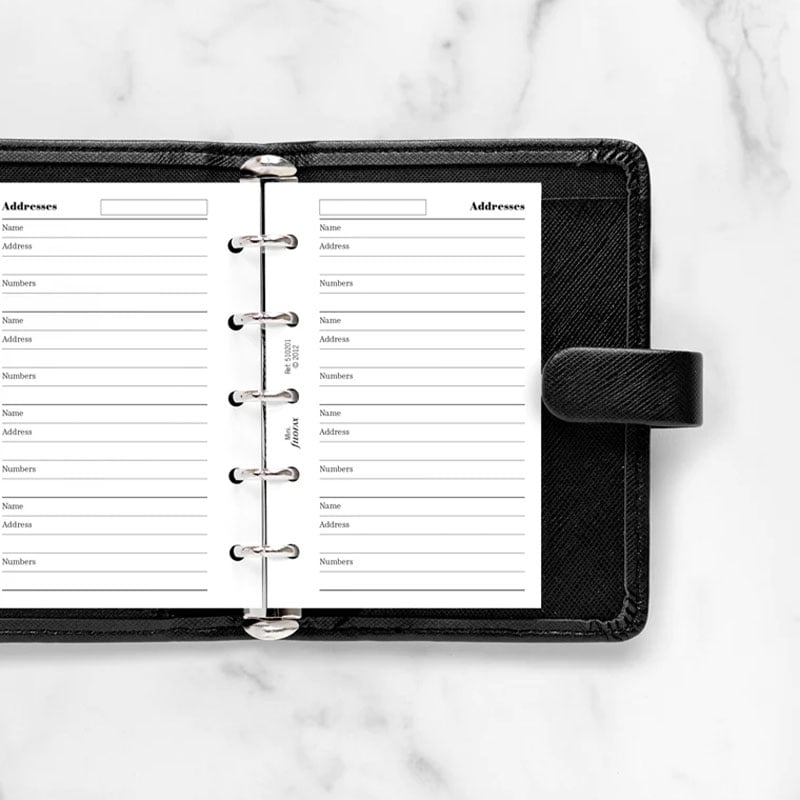 Планирайте седмичните си задачи и срещи с помощта на листата за контакти Filofax, съвместими с всеки Mini органайзер на марката.