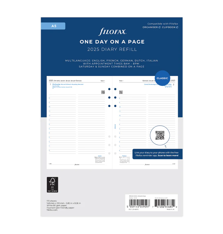 Водете си структурирани записки за всеки ден от седмицата по часове с пълнителите на марката Filofax!