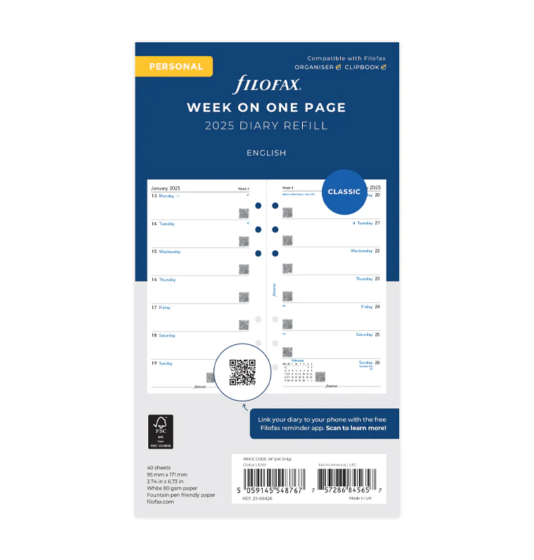 Водете си структурирани записки за всеки ден от седмицата с пълнителите на марката Filofax!
