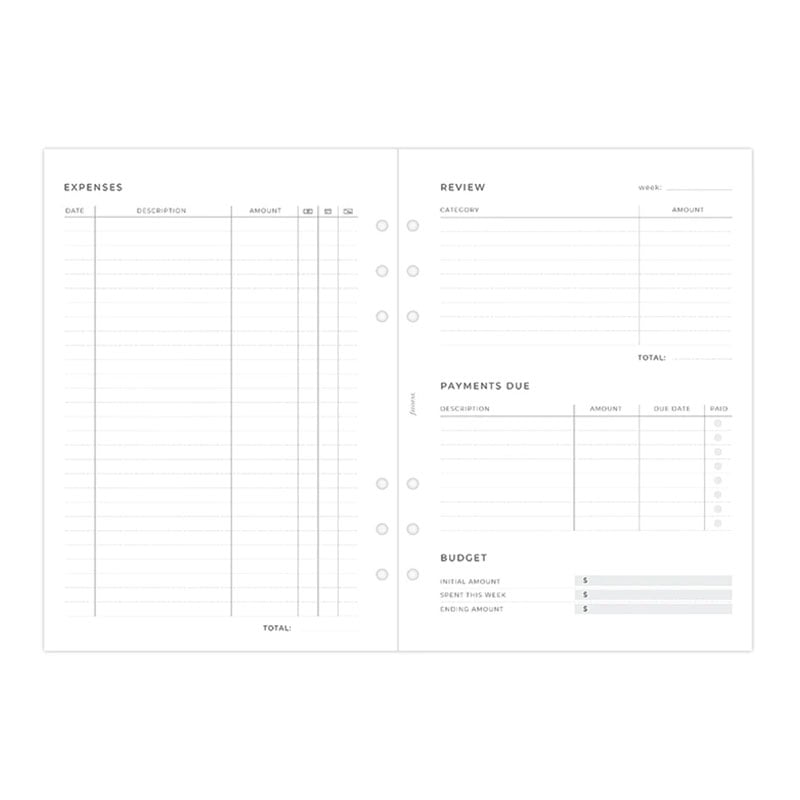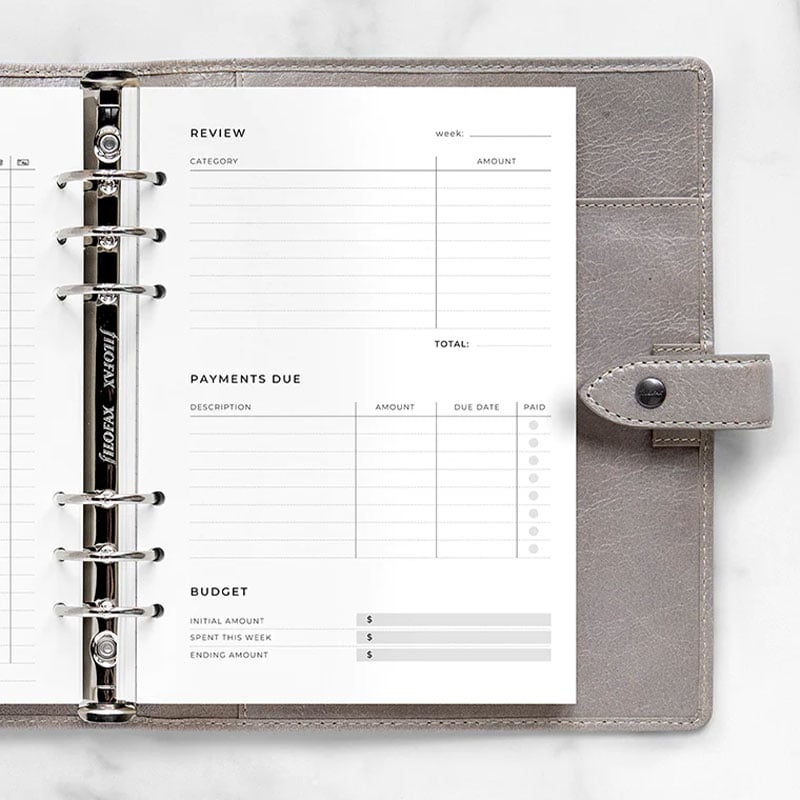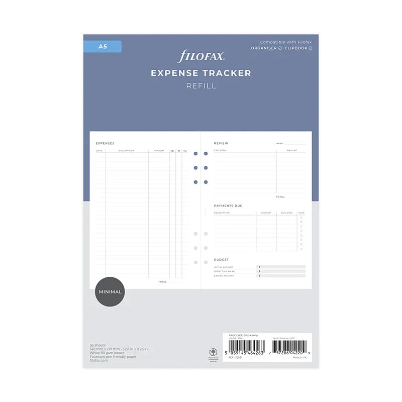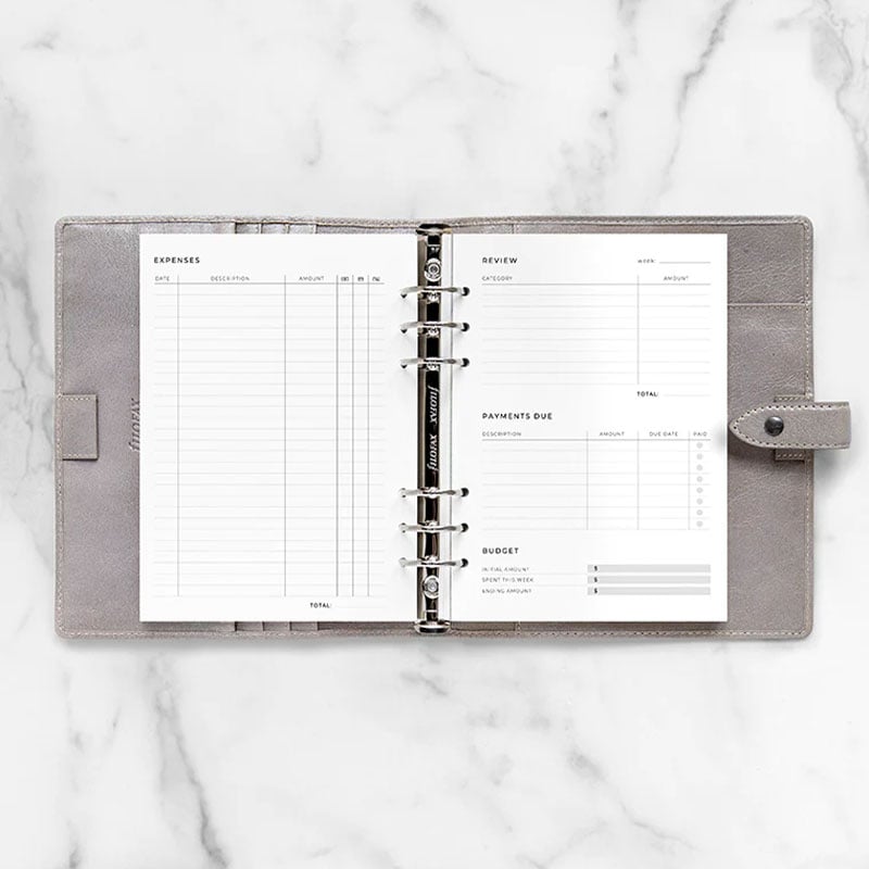 Планирайте седмицата си с помощта на листата за разходи Filofax, съвместими с всеки А5 органайзери clipbook на марката.