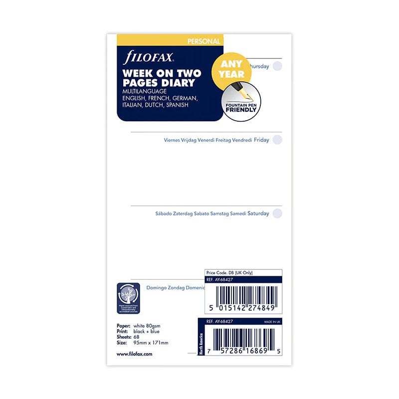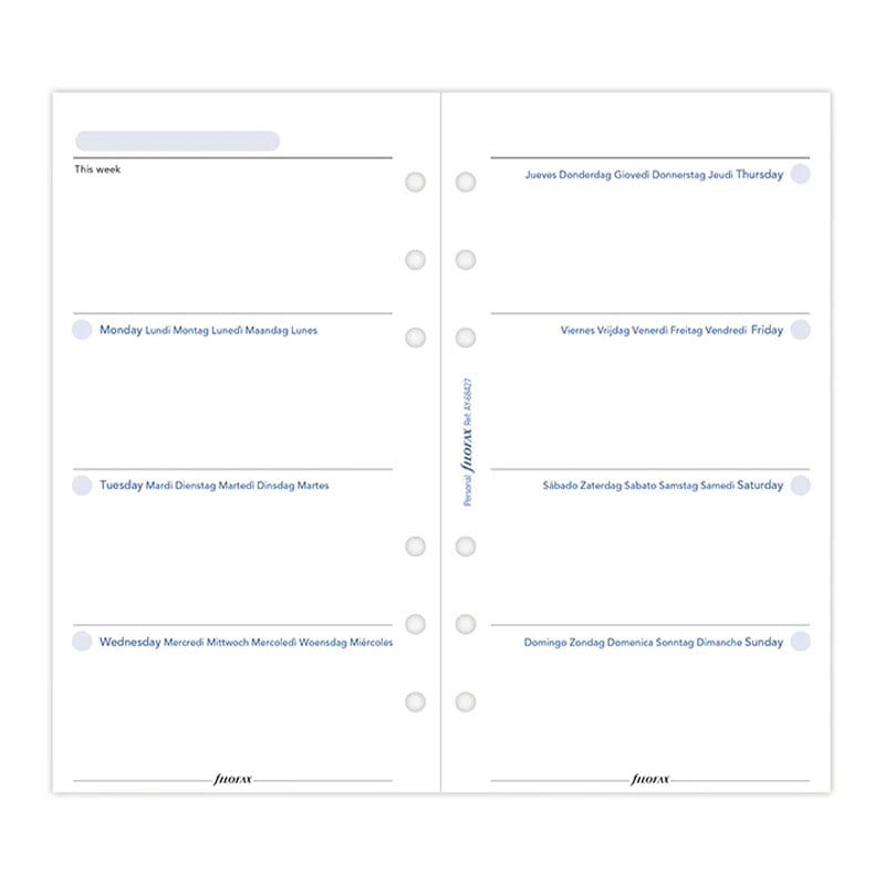 Планирайте седмичните си задачи и срещи с помощта на седмичния планер Filofax, съвместим с всички Personal органайзери на марката.