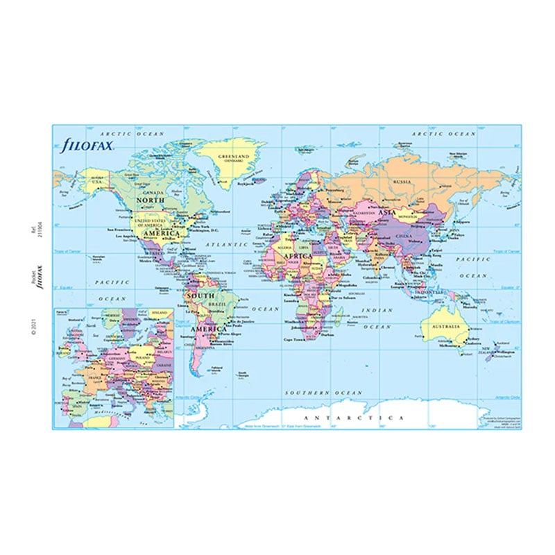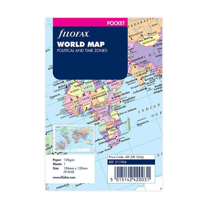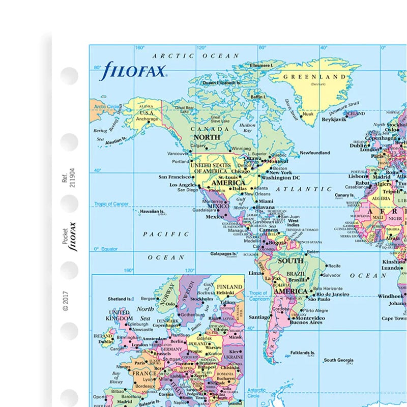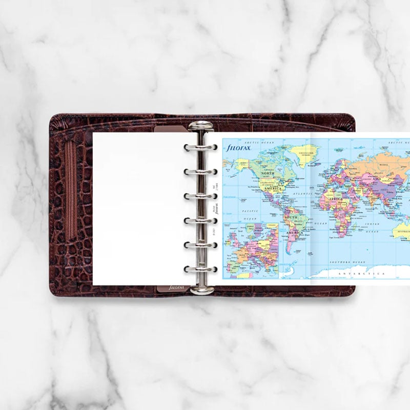 Добавете полезна сгъваема карта на света към вашия Pocket органайзер и clipbook на Filofax.