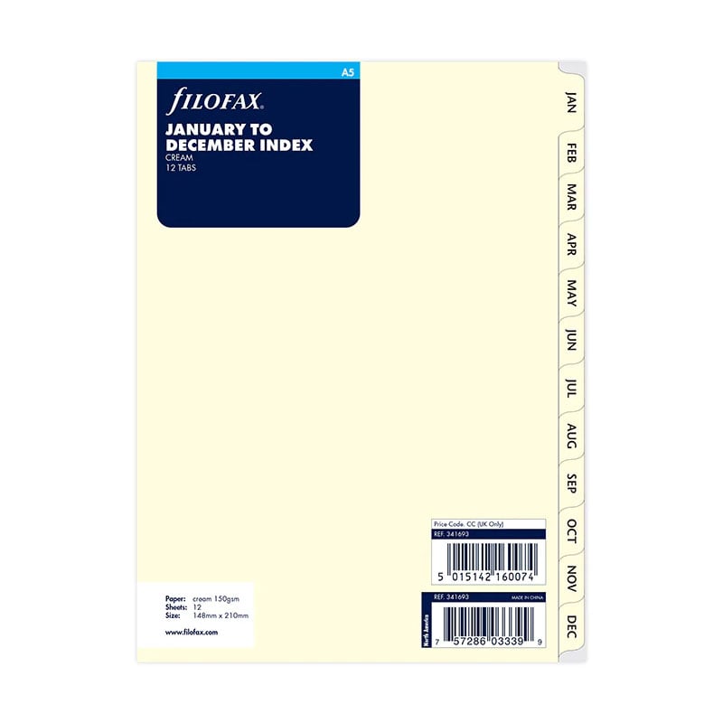 Filofax Разделител за органайзер, A5, от януари до декември, кремав