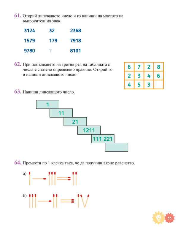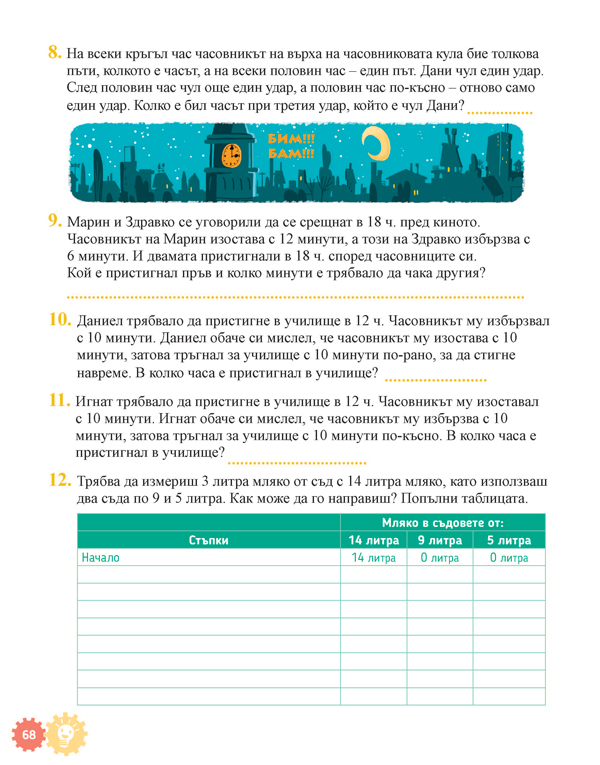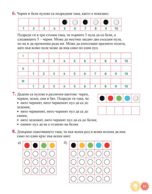 Задачите в него са изключително разнообразни по съдържание и начин на онагледяване и задаване. Всяка задача изисква нов подход и разсъждения, различни от тези, използвани при решаването на другите задачи. По този начин учениците постоянно ще развиват своите познавателни умения и математически способности.