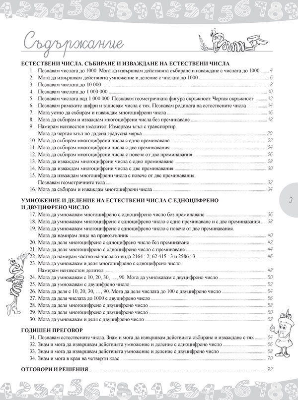 С помощта на своите приятели Мат и Ема четвъртокласниците ще станат по-уверени в събирането и изваждането на естествени числа, ще овладеят техники за умножение и деление на многоцифрени с едноцифрени и с двуцифрени числа, ще задълбочат знанията си за геометрични фигури и тела и за мерните единици за дължина, маса, време, лице и ъгъл, ще решават текстови задачи и ще усъвършенстват уменията си за описване на ситуации от действителността с математически модели.