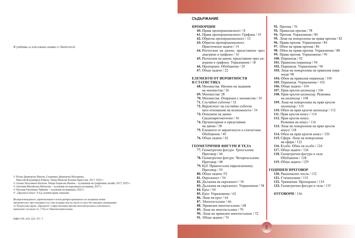 Учебникът по математика за 6. клас е преработен в съответствие с новата учебна програма от 2022/2023 г. Разделен е в 2 части и се отличава с: