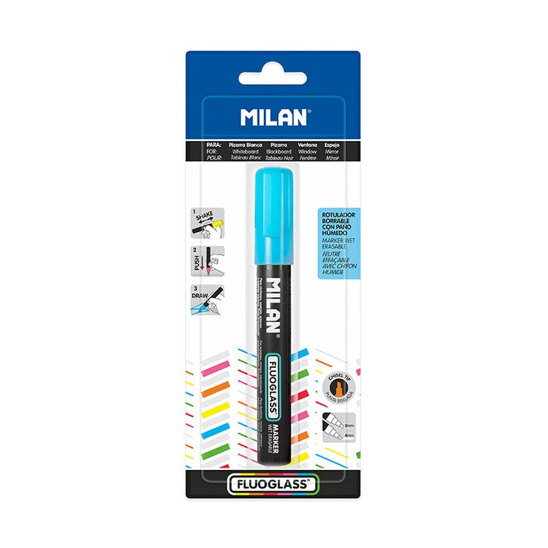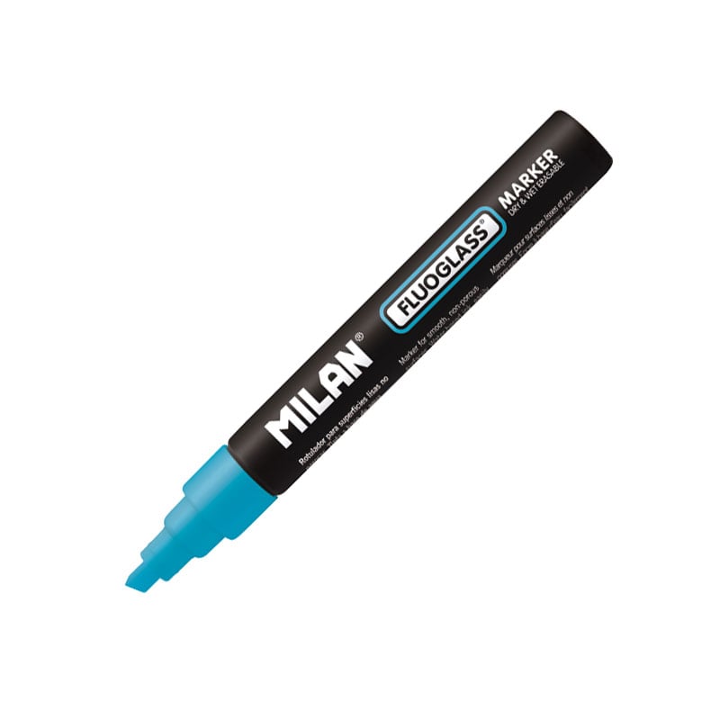 Milan Маркер Fluoglass, скосен, изтриваем, син