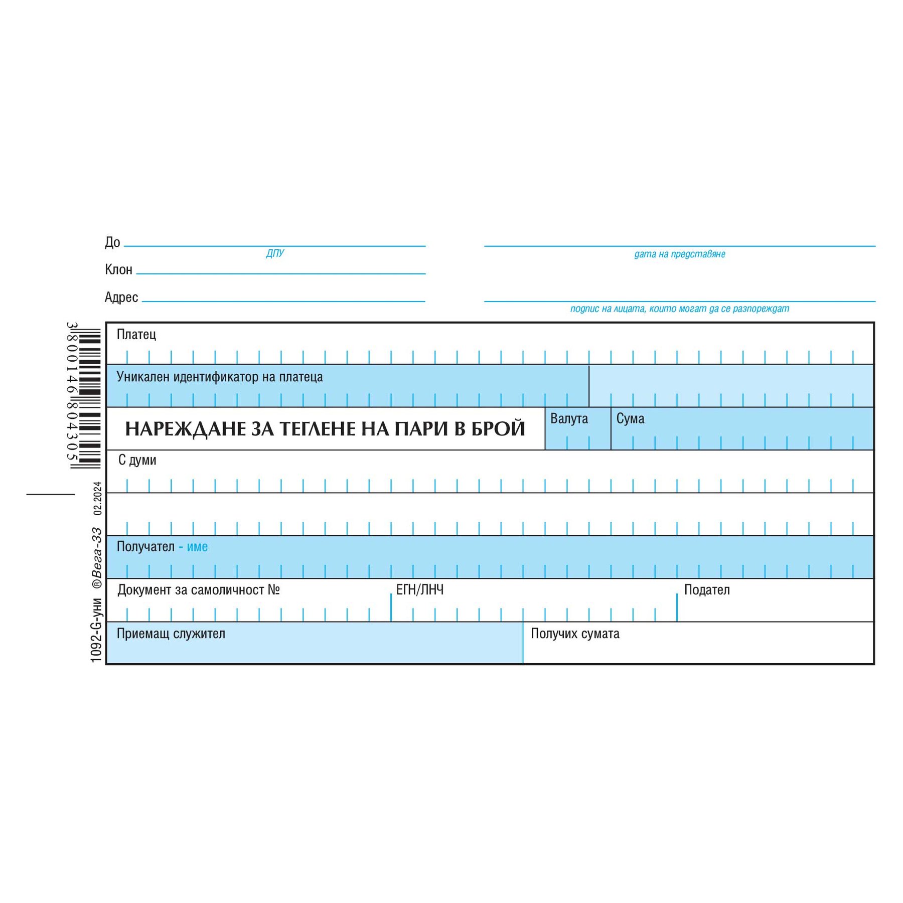 Нареждане за теглене на пари в брой