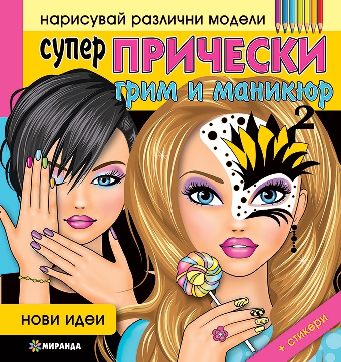Нарисувай различни модели: Супер прически, грим и маникюр (нови идеи) + стикери