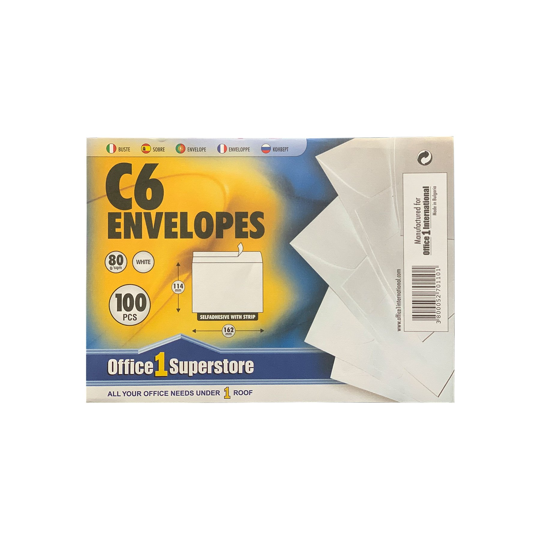 Office 1 Плик, C6, 114 x 162 mm, хартиен, със самозалепваща лента, бял, 100 броя