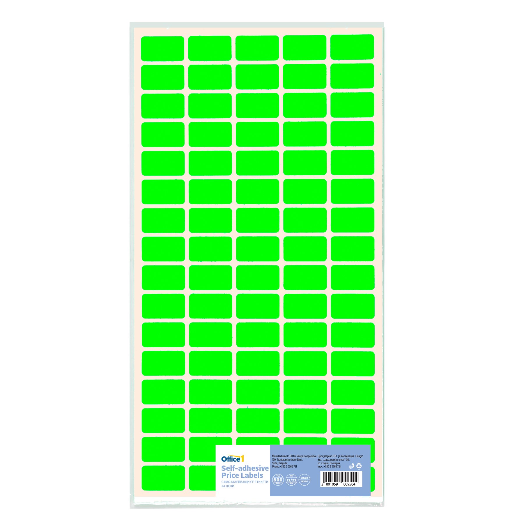 Office 1 Самозалепващи се етикети за цени, 12 x 22 mm, зелени, 800 броя