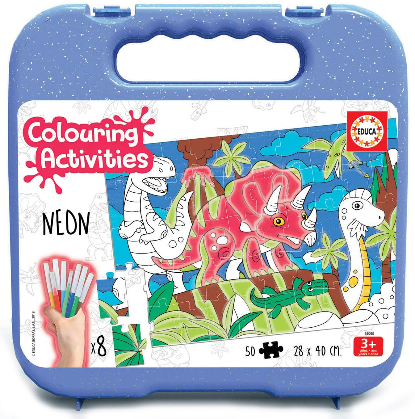 Пъзел за оцветяване Educa от 50 части – Динозаври, с 8 флумастера