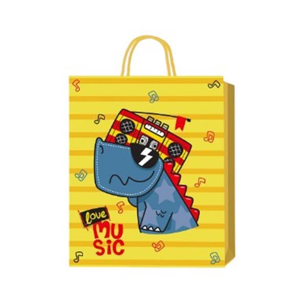 Подаръчна торбичка Динозавър, 3D, детска, 26 х 32 х 10 cm, жълта