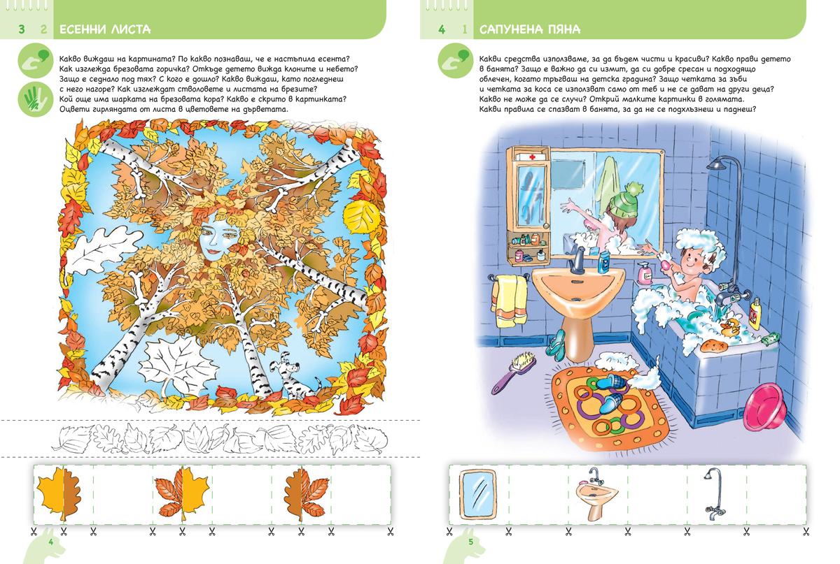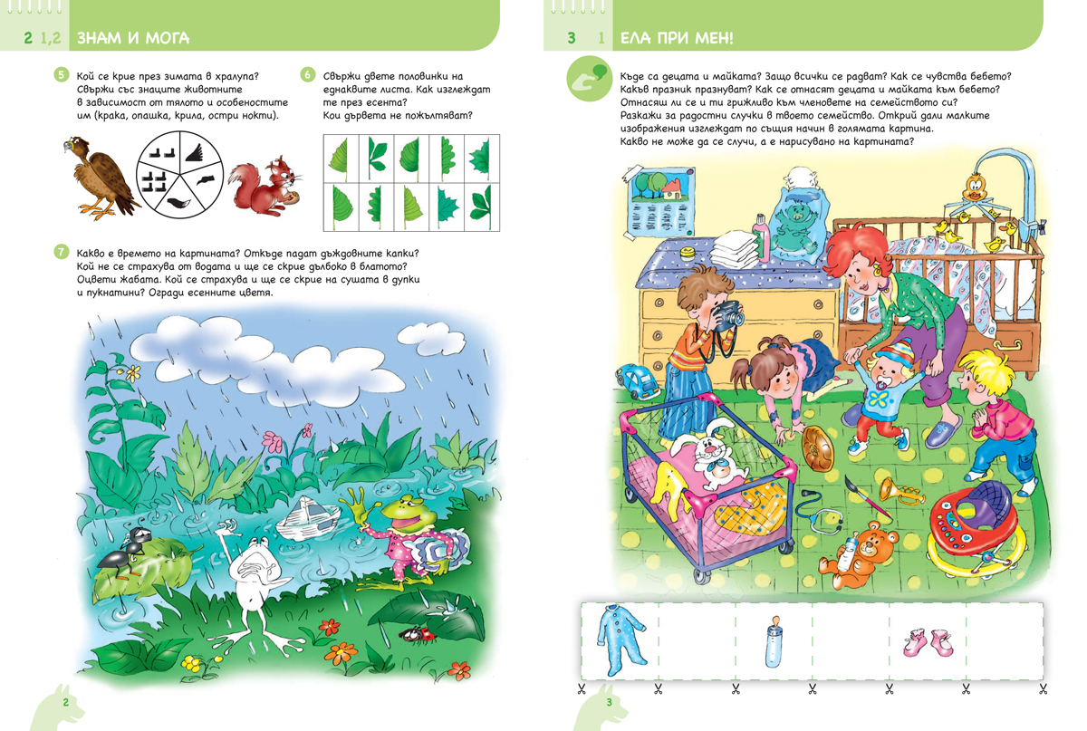 Богато илюстрираната познавателна книжка ще ориентира детето в различни ситуации и ще му помогне да формира социално ориентирано поведение. Предлага възможности за: