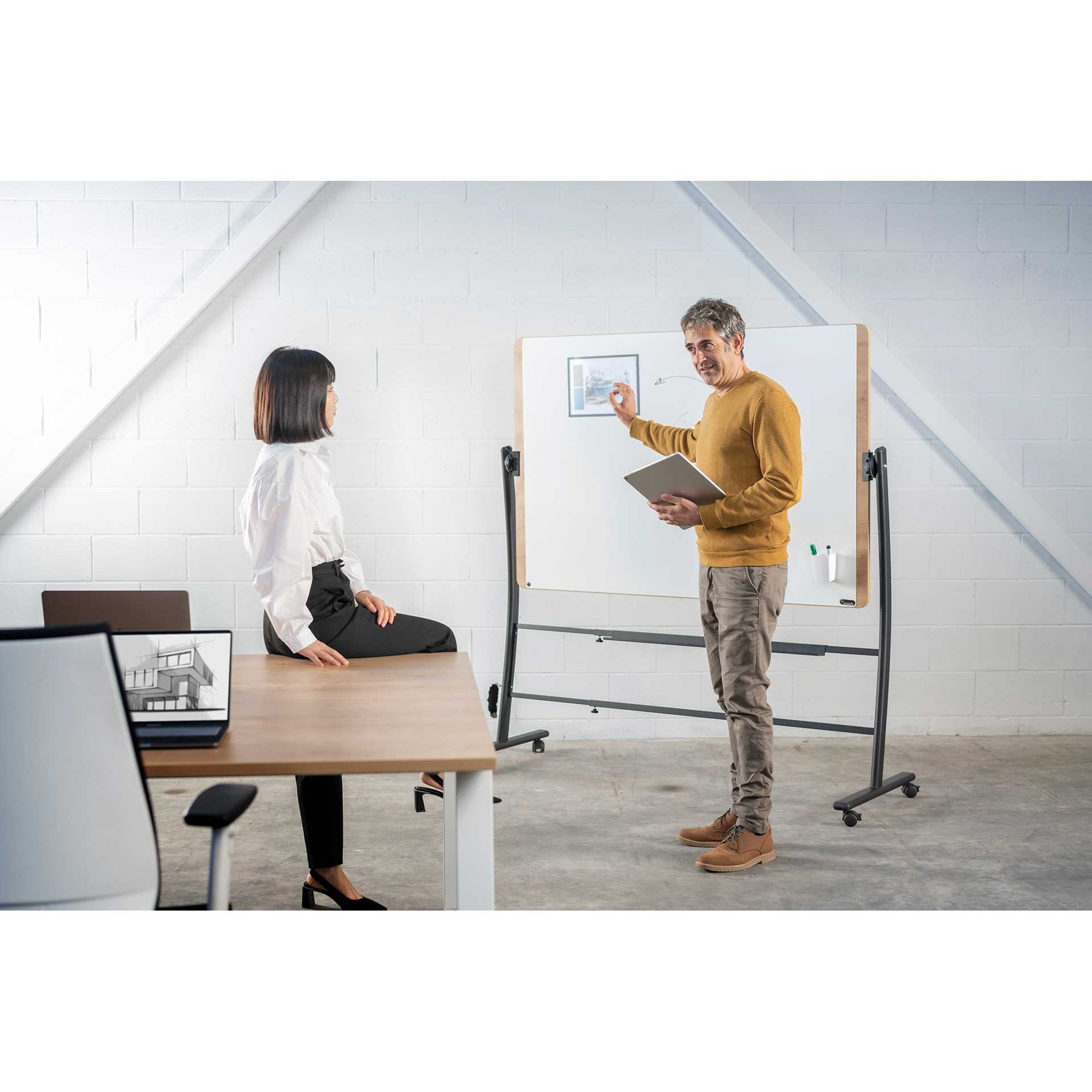 Двустранна подвижна бяла дъска.