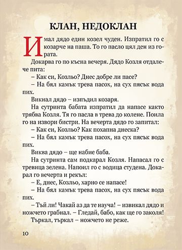 Косе Босе Клан, недоклан Кума Лиса кръстница Двеста и двайсет хитрини Дядо и ряпа Неродена мома и други приказки