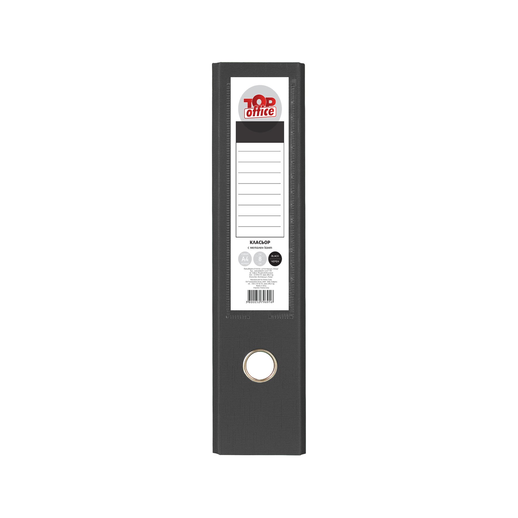 Top Office Класьор, 8 cm, PP, с метален кант, черен