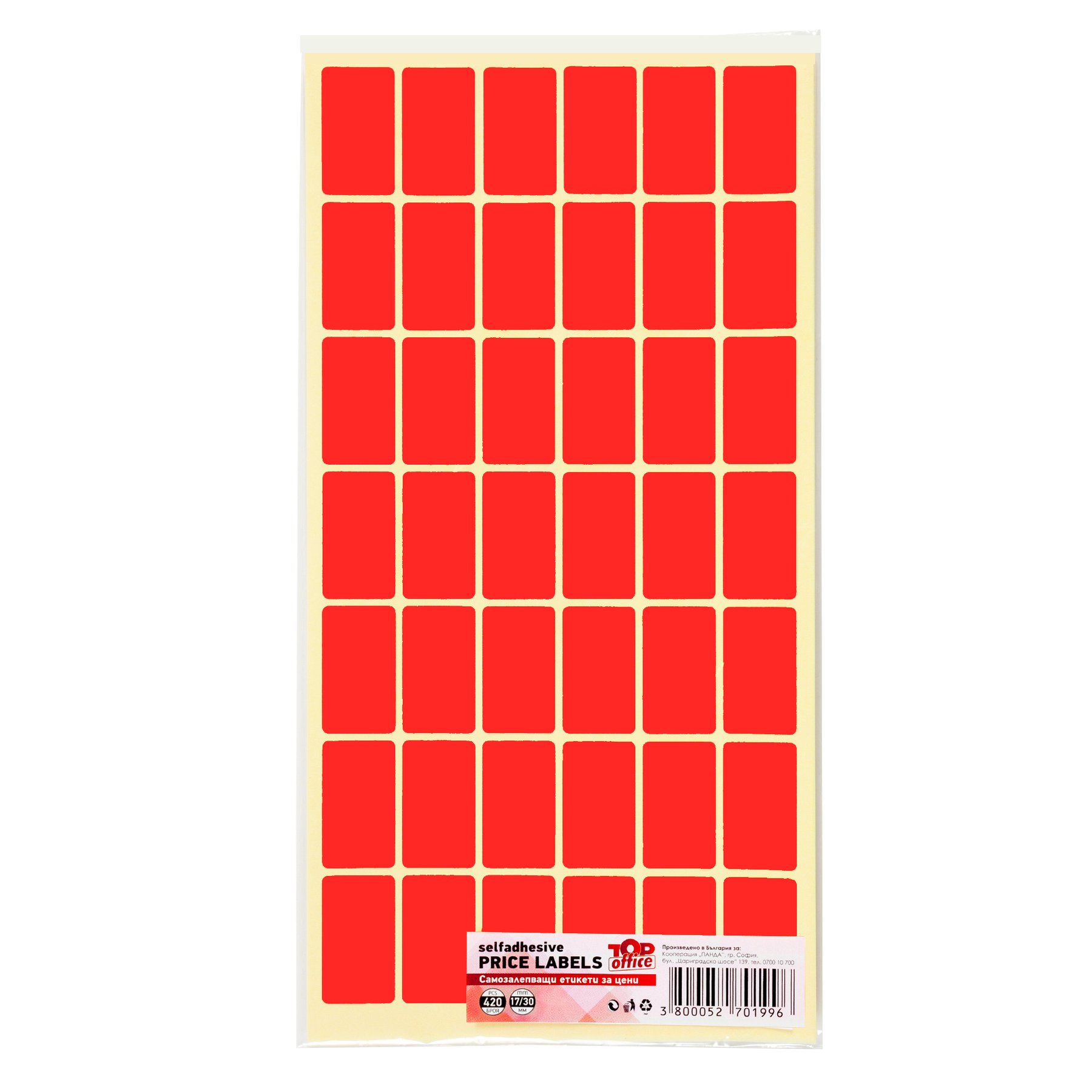 Top Office Самозалепващи етикети за цени, 17 x 30 mm, червени, 420 броя
