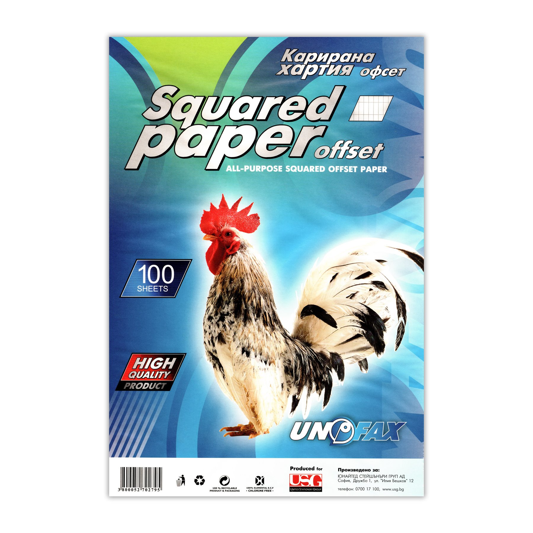 Unofax Карирана хартия, A4, офсет, 100 листа